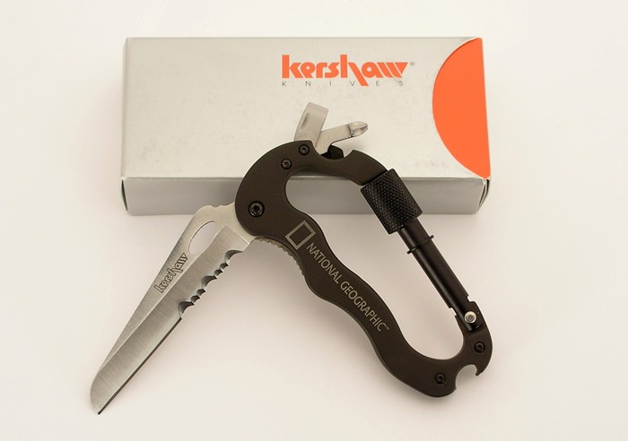 National Geographic Carabiner Tool Originally licensed to use the Society's name, the National Geographic Carabiner Tool later became simply "Carabiner Tool 1004" when the association between Kershaw and NGS ended. Launce Barber, who later became half of CRKT's vaunted i.d. Works team, was the inventer and is named as such in patent #6,223,372. Construction quality of the original models made in Japan was quite good. Since production has moved to China however the quality has fallen off noticably.