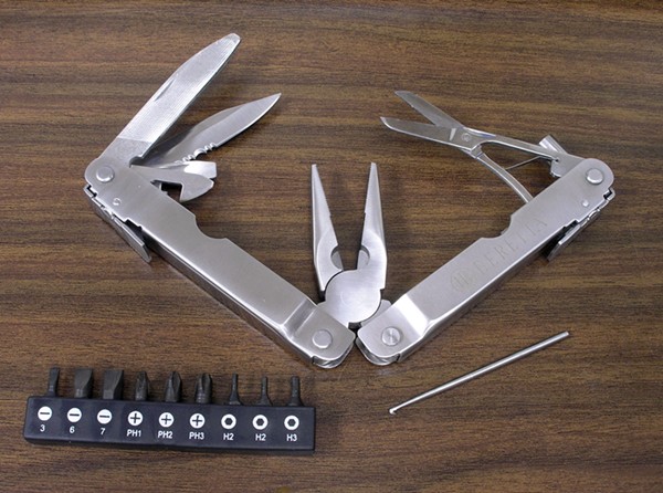 Beretta Pistol Tool Unlike the Shotgun Tool, the Beretta Pistol Tool does not have a host of features specifically suited towards firearms. As a matter of fact, it seems to be a rather ordinary, made-in-China multitool. Construction is better than most imports, although nowhere near American or European standards. Size is equivelent to a Leatherman Super Tool.