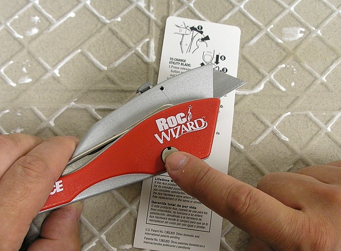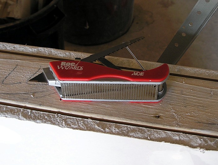 A drywall rasp is located along the bottom surface of the Roc Wizard.Sheath