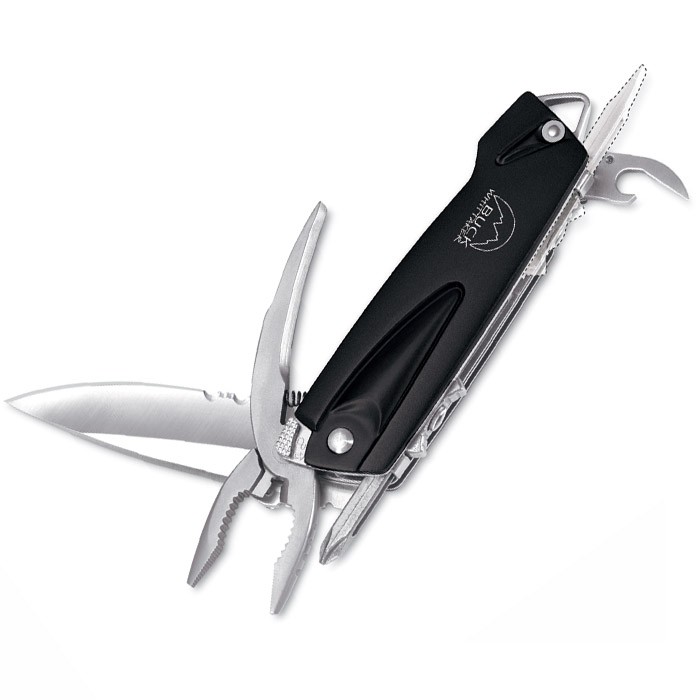 - Both the knife blade and the can opener/bottle opener blade lock open via liner locks.