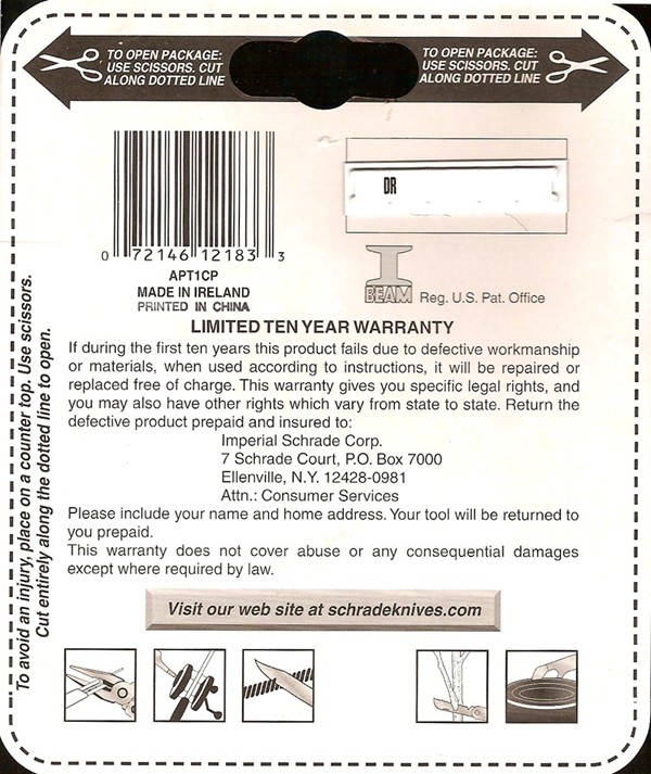The Apex Wilderness tool was simply a side brand the Schrade came up with to market their TMT1 multitool to outdoorsmen like hikers and hunters. Other than the plastic logo isert, the tool is identical to the Tradesman TMT1 Multi-Tool backside of clam package(click to zoom)