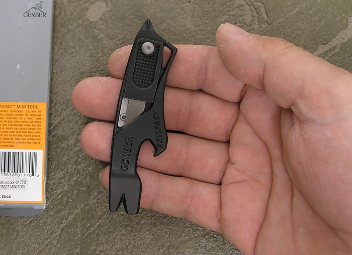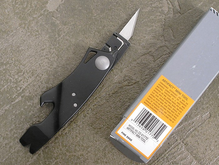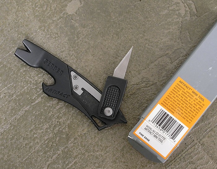 Artifact Small prybar tools with bottle opener cutouts and integral screwdrivers had been the exclusive domain of Peter Atwood prior to the Gerber Artifact. Combining stainless steel construction with a folding razor knife that locks open, all for a MSRP of less than $15, the Artifact will expose this type of multitool to a large number of folks who were previously unable to afford the pricey Atwood offerings