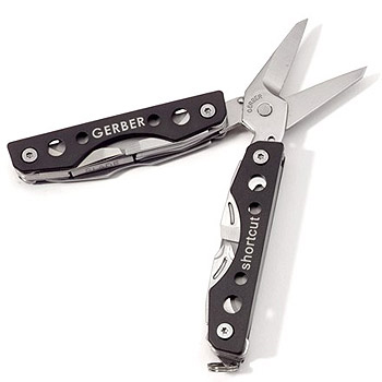 Shortcut, red The Gerber Shortcut keychain tool was introduced in 2005, along with its sister tool, the Clutch. The significant difference between these two is that the Shortcut is scissors based, while the Clutch features plier jaws. Both have all outside-opening blades.